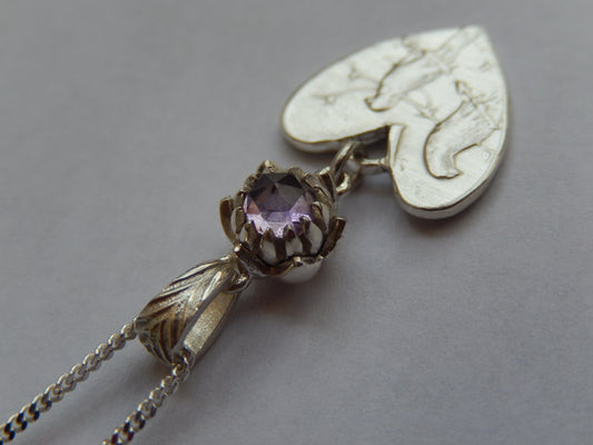 One Cent Heart and Protea Birthstone Necklace - February (Amethyst)