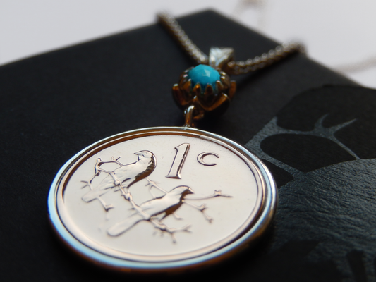 Classic One Cent and Protea Birthstone Necklace - December (Turquoise)