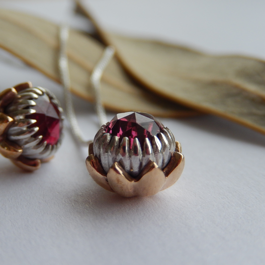 Bold Protea Stud Earrings (Rhodolite Garnet)