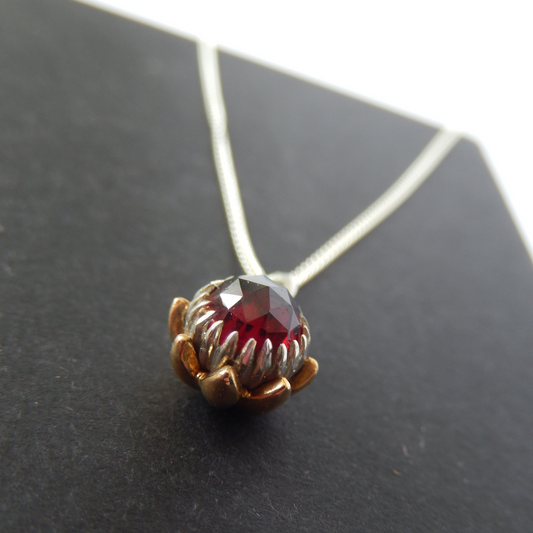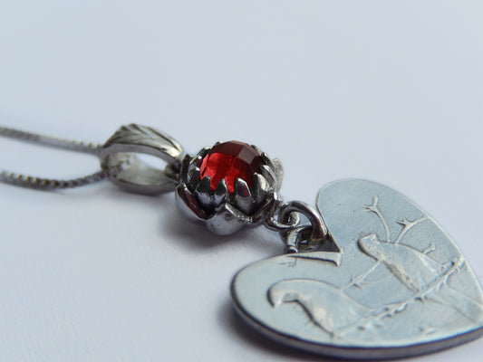 One Cent Heart and Protea Birthstone Necklace - January (Red Garnet)