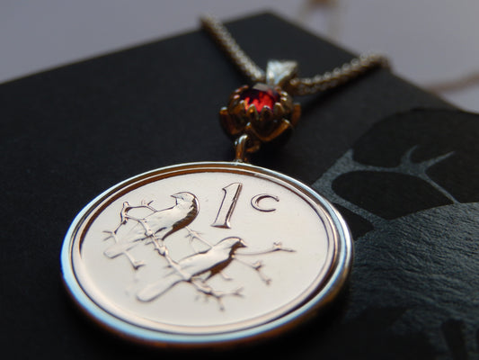 Classic One Cent and Protea Birthstone Necklace - January (Red Garnet)