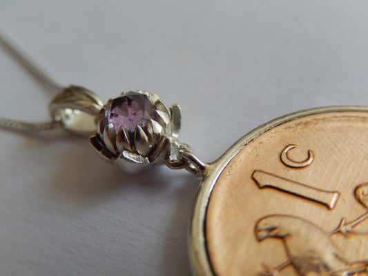 Classic One Cent and Protea Birthstone Necklace - February (Amethyst)