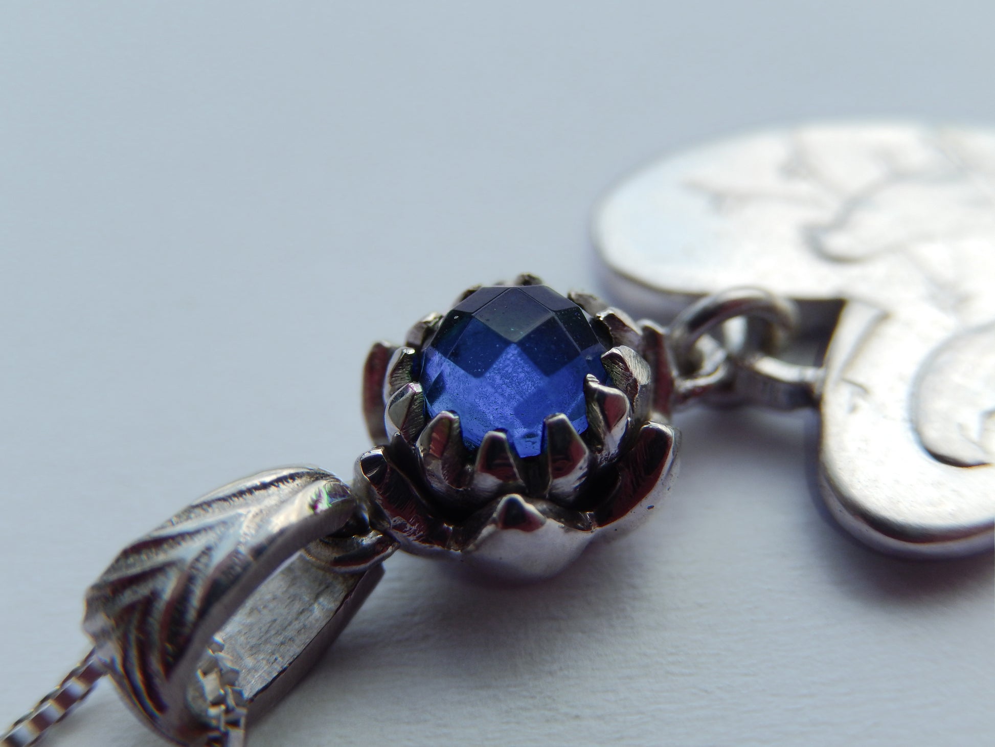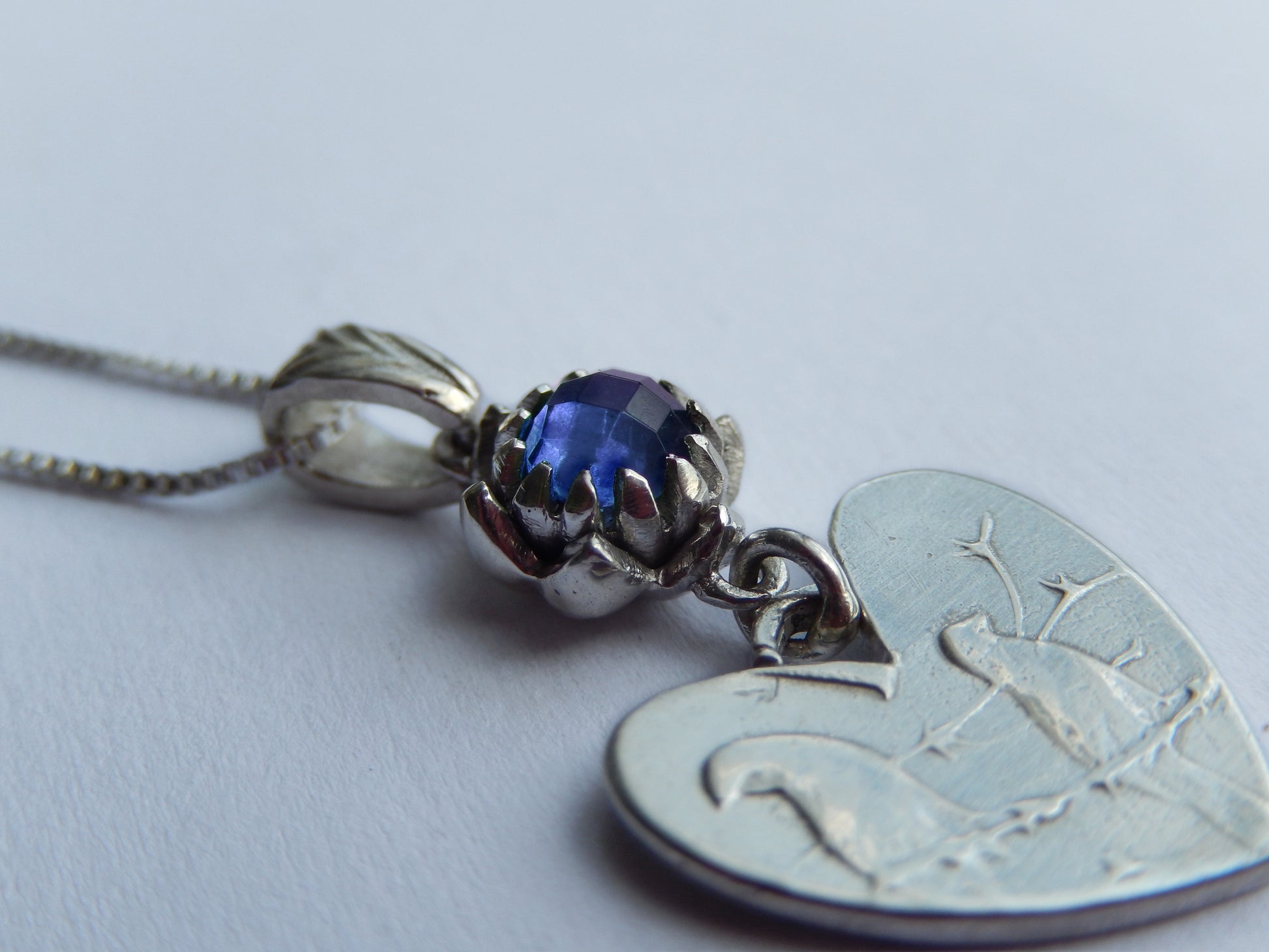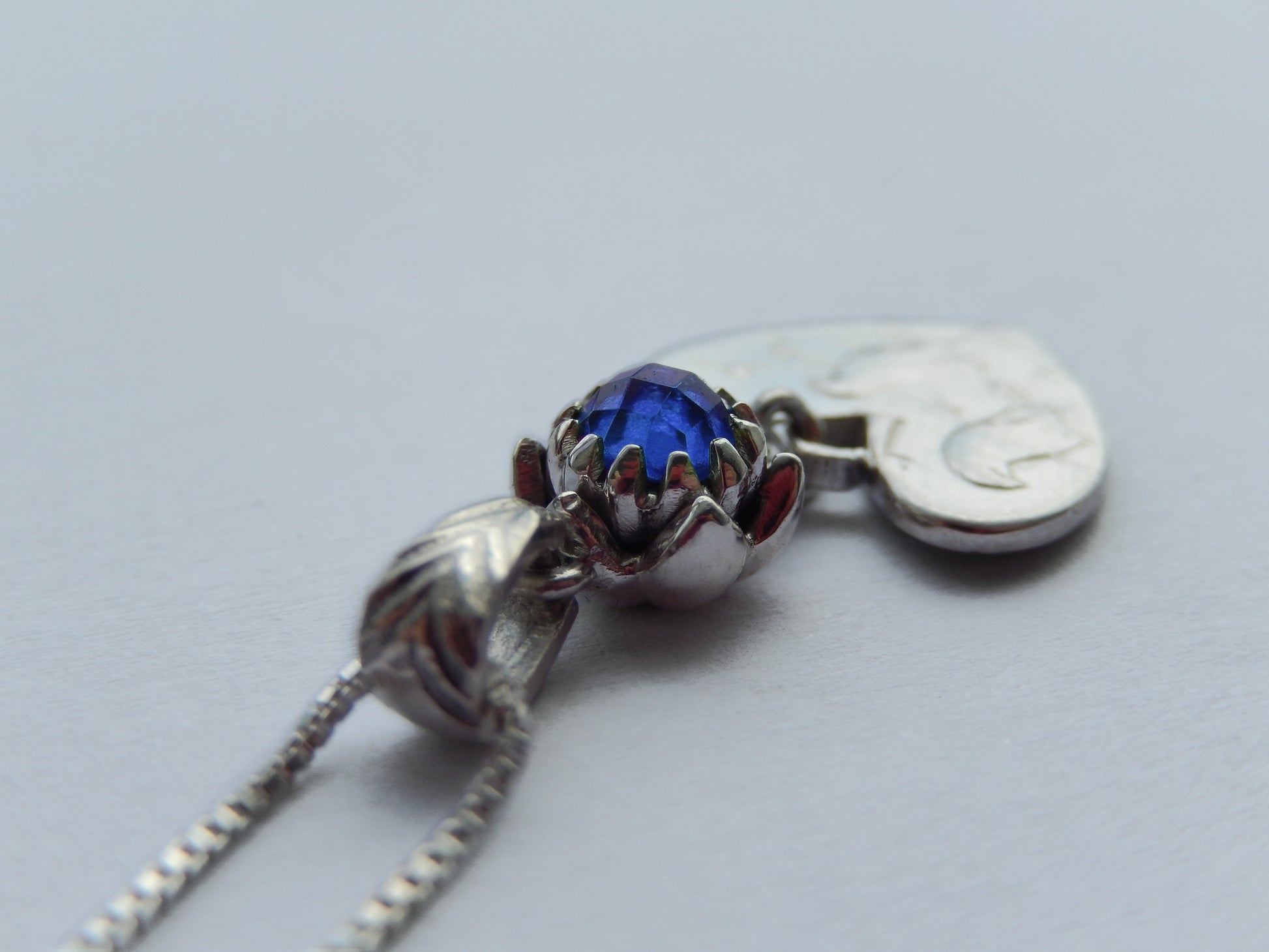 One Cent Heart and Protea Birthstone Necklace - September (Sapphire)