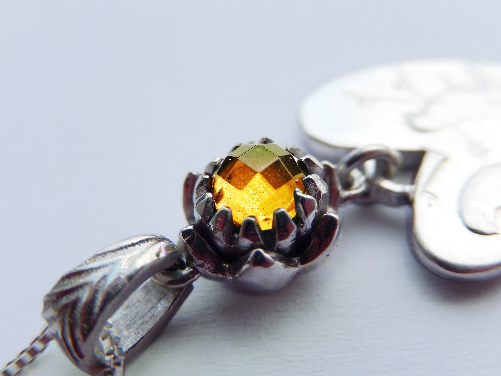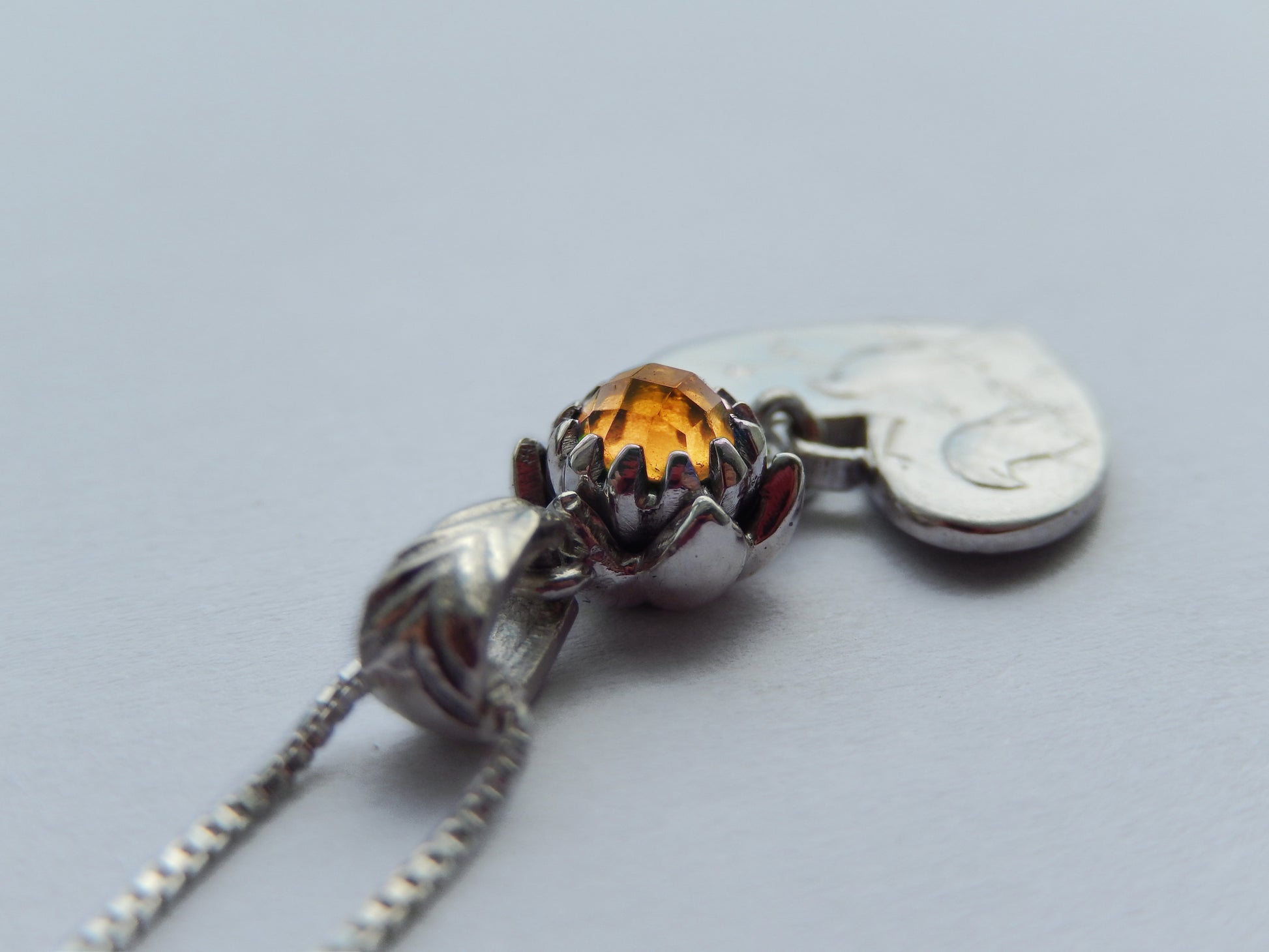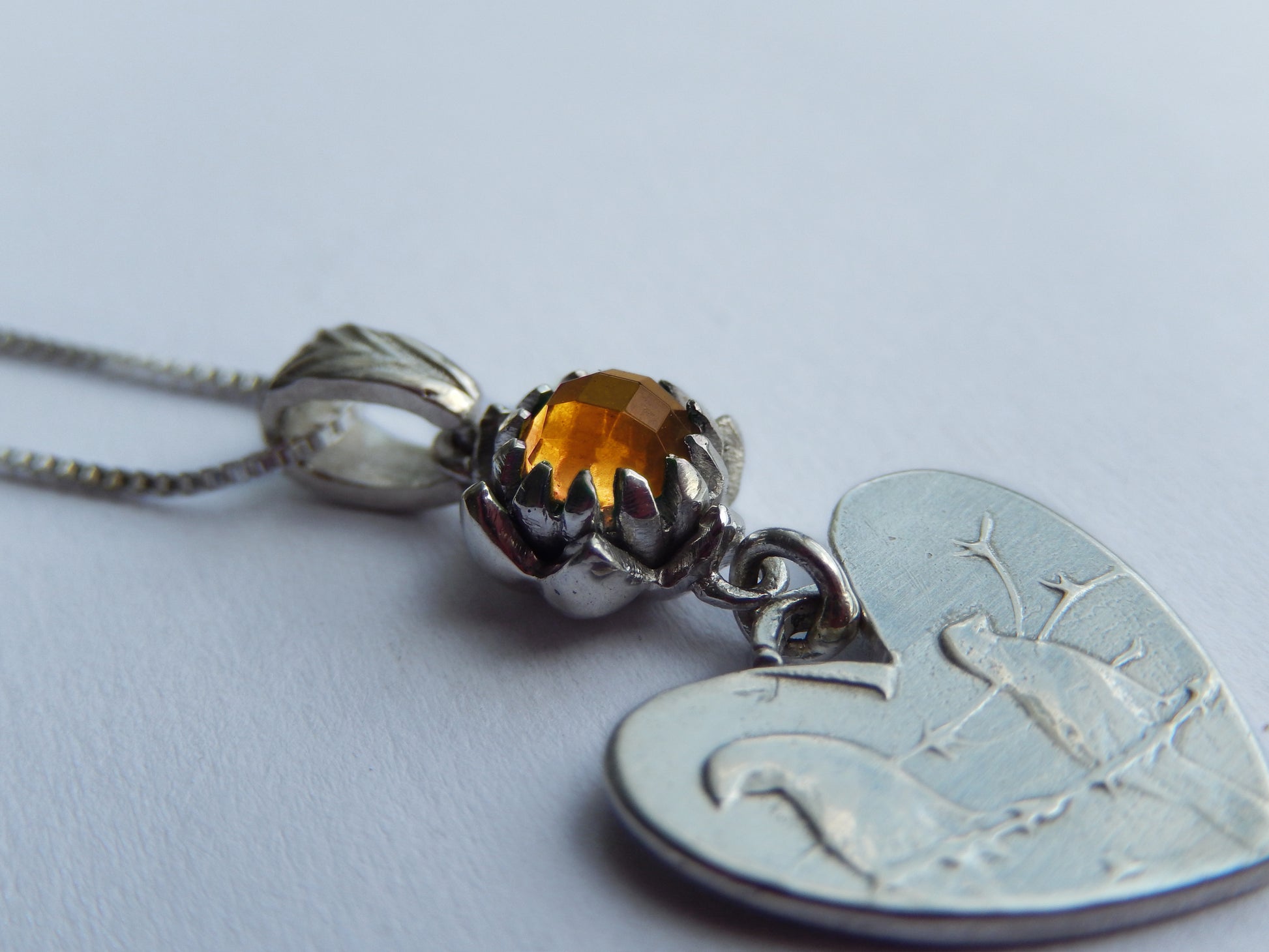 One Cent Heart and Protea Birthstone Necklace - November (Citrine)