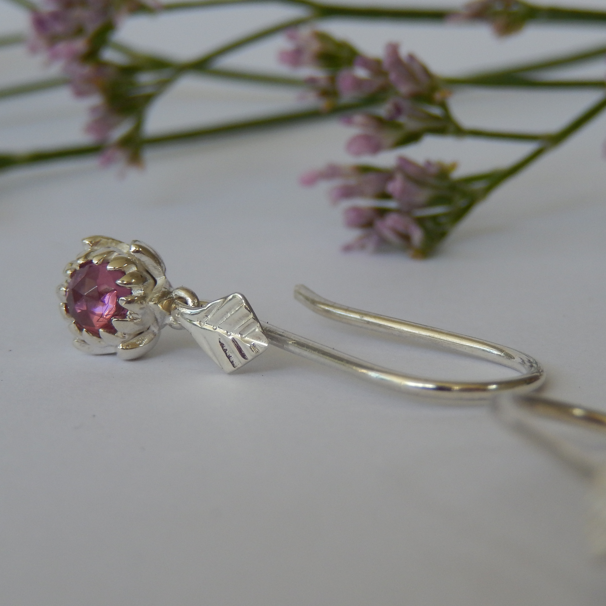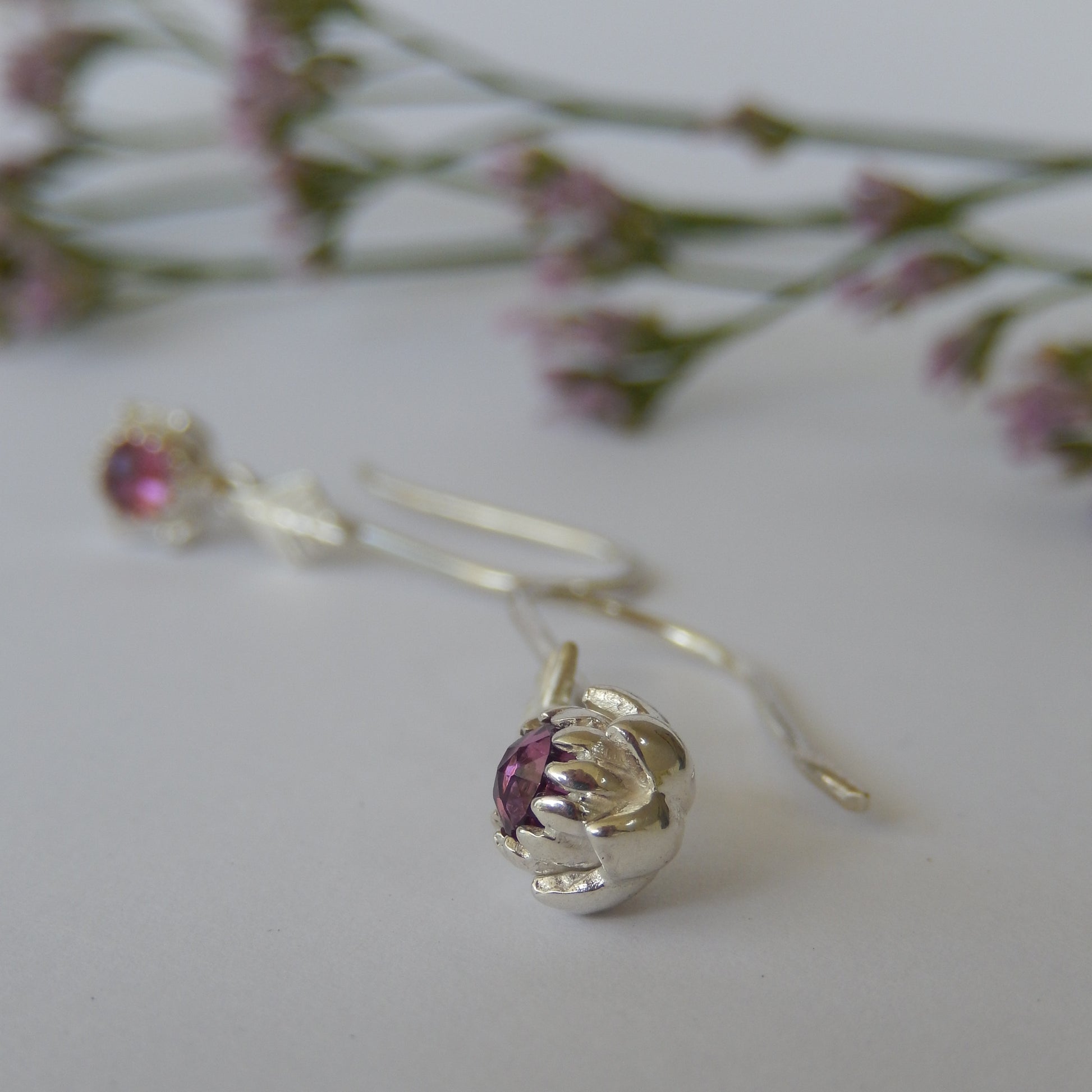 Petite Protea Hook Earrings (Rhodolite Garnet)